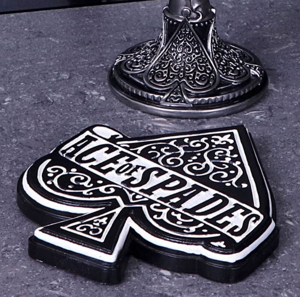 Officieel gelicentieerde set van vier Motorhead Ace of Spades harsonderzetters Geschenkdoos Officieel gelicentieerde Motorhead-onderzetters. Zeer gedetailleerd gebeeldhouwd ontwerp van ace of spaces. Gegoten in de beste hars.