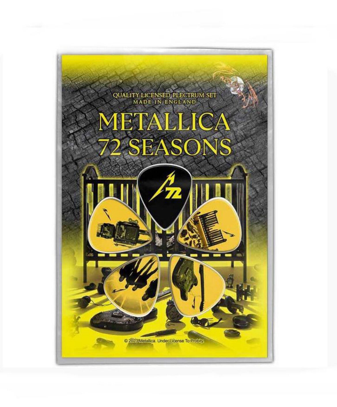 Een officieel gelicentieerd Metallica Plectrum-pakket met het '72 Seasons'-ontwerpmotief.