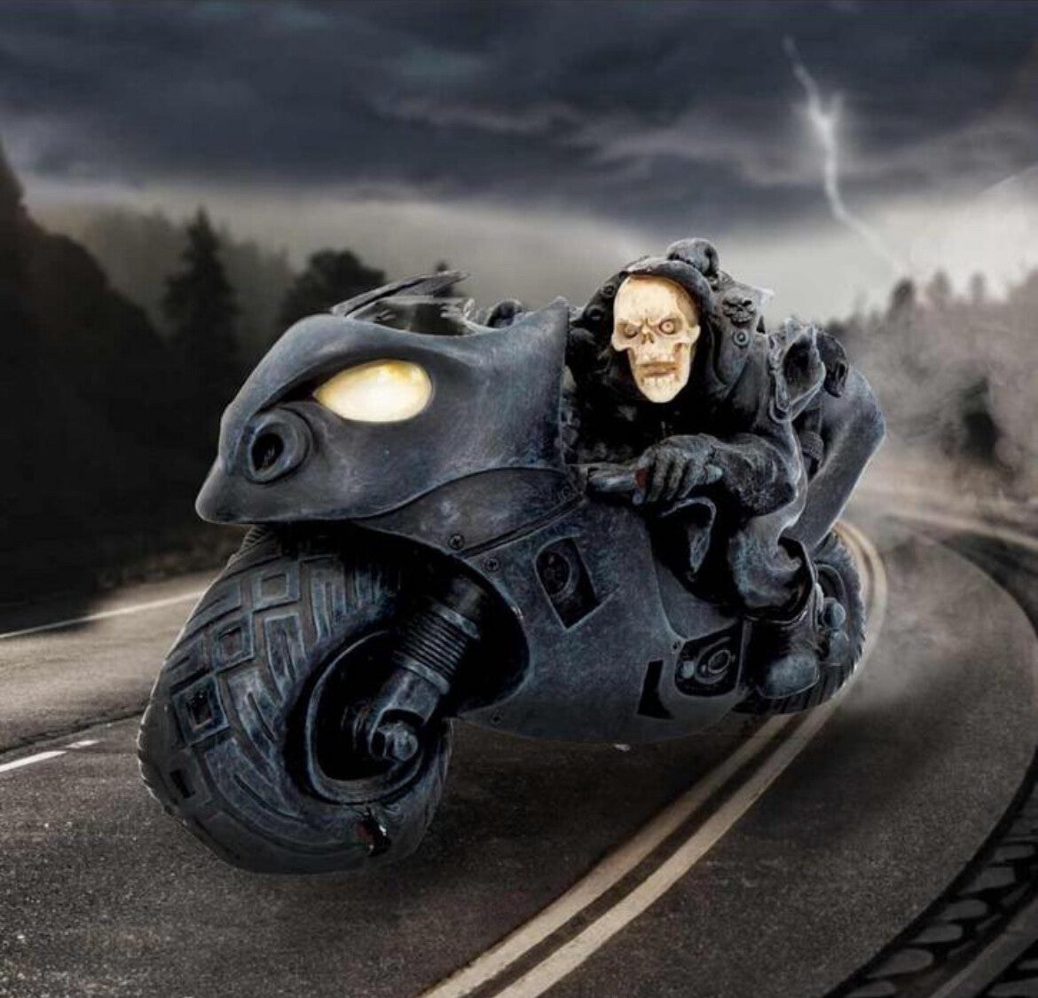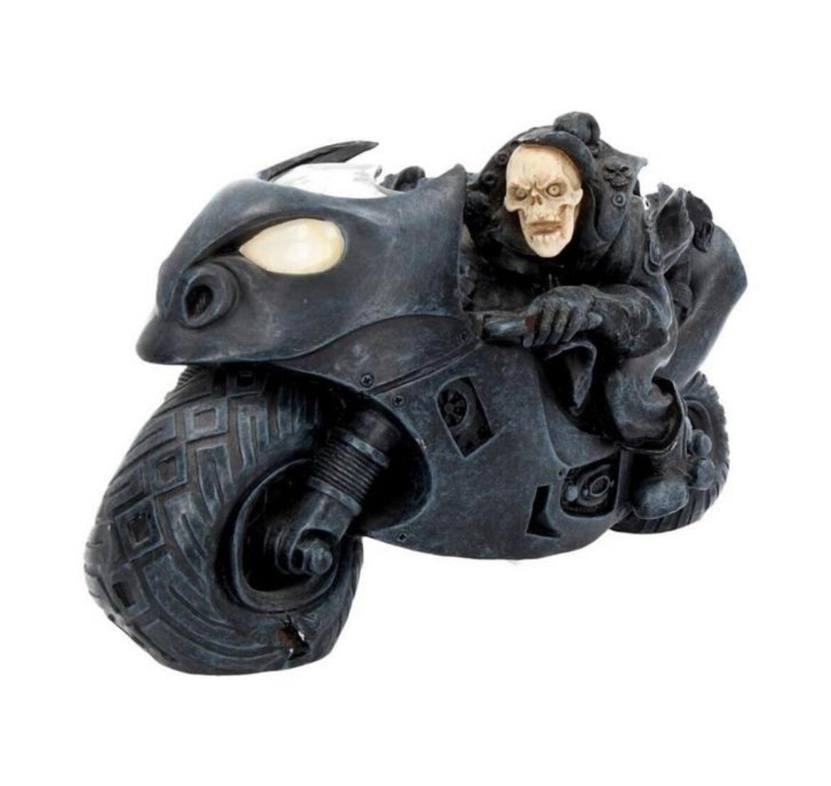 Speed Freak 19.5cmSnelheidsfreak 19,5 cmSpeed Freak Skeleton Motorbeeldje 19,5 cmGewicht (in doos): 0,53 kgMateriaal: PolyresinVerpakking: Bruine doosSkeletmotor beeldjeGegoten in de beste harsVakkundig met de hand beschilderd