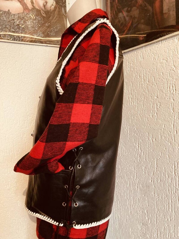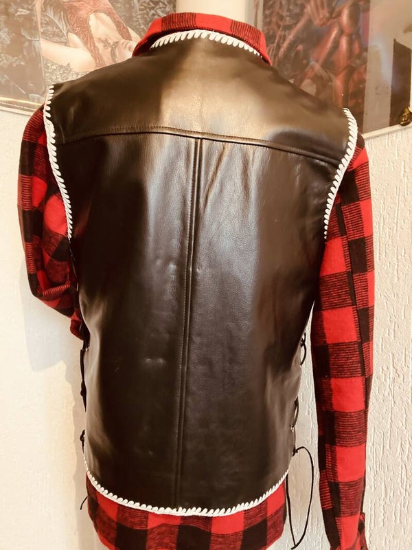 leren bikersvest met druksluiting en buiten- en 2 binnenzakken.
