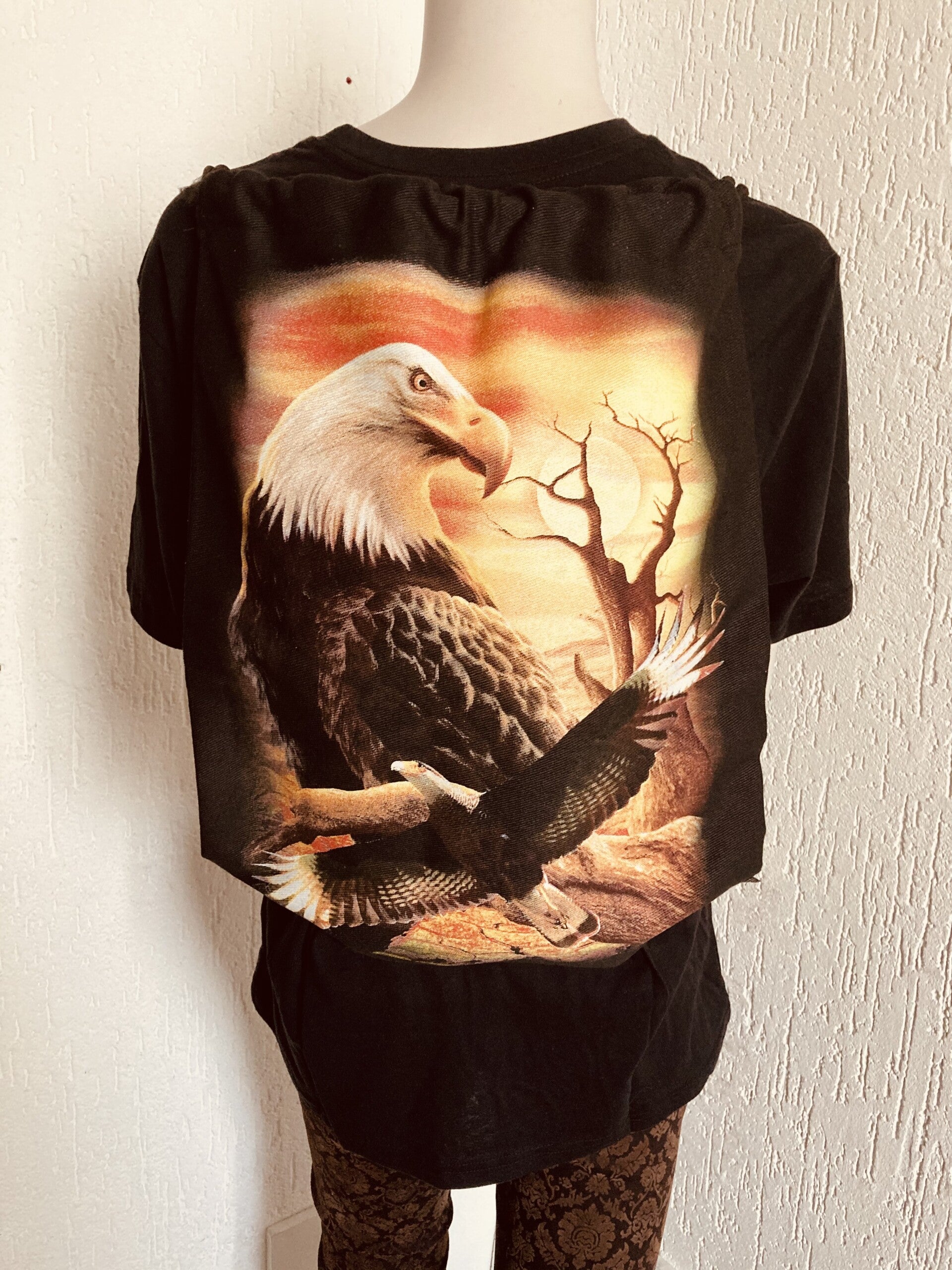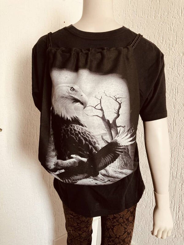 Stoffen rugzak met adelaarprint. Ene kant zwart-wit de andere in kleur.